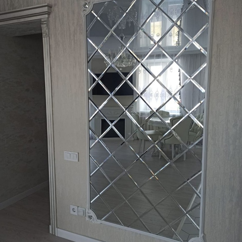 Использована зеркальная квадратная и треугольная плитка с фацетом.