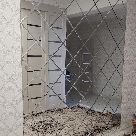 Использована серебристая квадратная зеркальная плитка размером 18х18.